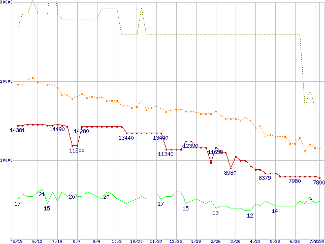 メモリ主要製品の最安値推移