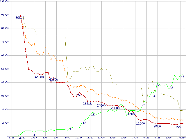 | PC2-4200* 1GBの価格推移 | | | (2004年5月15日~2005年7月30日) |