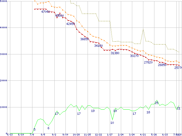 | HDS724040KLAT80 (400GB,8MB)の価格推移 | | | (2004年5月13日~2005年7月28日) |