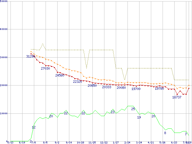 | 6B300S0 (300GB,16MB)の価格推移 | | | (2004年5月13日~2005年7月28日) |