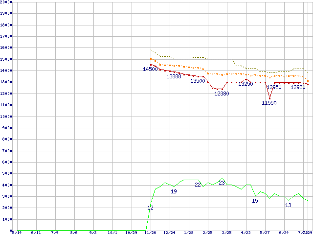 | Celeron D 345J (3.06GHz)の価格推移 | | | (2004年5月14日~2005年7月29日) |