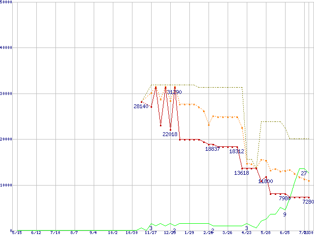 PC2-5300(DDR2-667) DDR2 SDRAM DIMMの最安値推移
