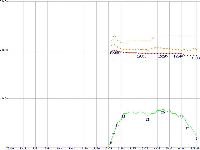 | Pentium 4 530J (3GHz)の価格推移 | | | (2004年5月14日~2005年7月29日) |