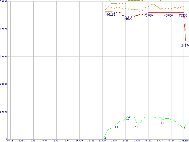 | Pentium M 760 (2GHz)の価格推移 | | | (2004年5月14日~2005年7月29日) |