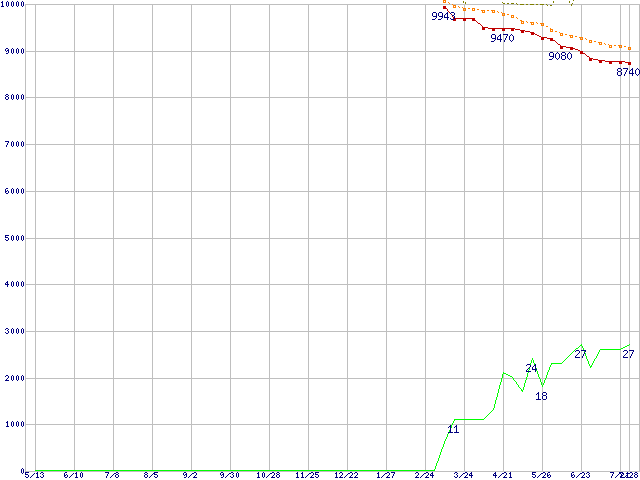 | HDT722516DLAT80 (160GB,8MB)の価格推移 | | | (2004年5月13日~2005年7月28日) |