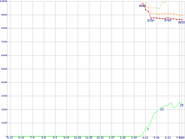 | 6L160P0 (160GB,8MB)の価格推移 | | | (2004年5月13日~2005年7月28日) |