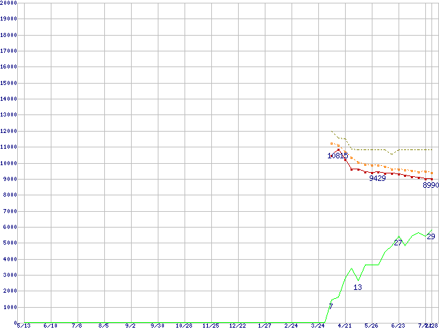 | HDT722516DLA380 (160GB,8MB)の価格推移 | | | (2004年5月13日~2005年7月28日) |