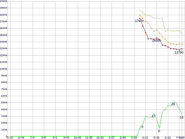 | HDT722525DLA380 (250GB,8MB)の価格推移 | | | (2004年5月13日~2005年7月28日) |