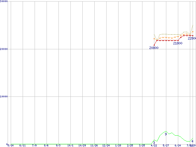 | Turion 64 MT-30 (1.6GHz,1MB) バルクの価格推移 | | | (2004年5月14日~2005年7月29日) |