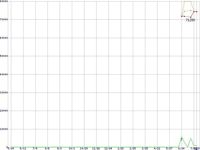 | Athlon 64 X2 4400+(2.2GHz,L2 1MBx2)の価格推移 | | | (2004年5月14日~2005年7月29日) |