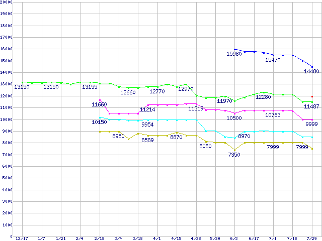 | Socket 754 (PGA,FSB 800MHz)の最安値推移 | | | (2004年12月17日~2005年7月29日) |