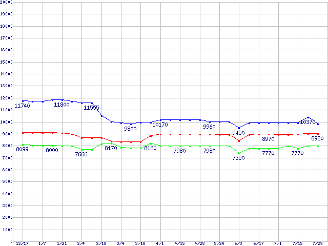 Socket 754 (PGA,FSB 800MHz)の最安値推移