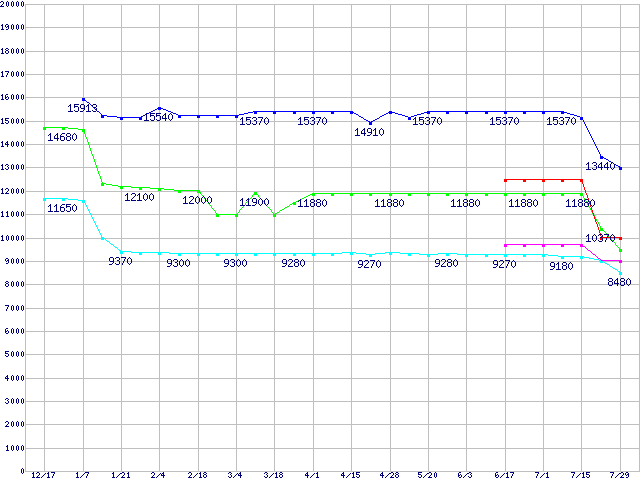 Socket 754 (PGA,FSB 800MHz)の最安値推移