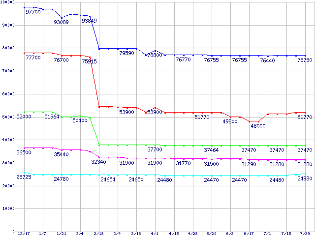 Socket 604 (FCBGA,FSB 800MHz,L2 1MB,Nocona)の最安値推移