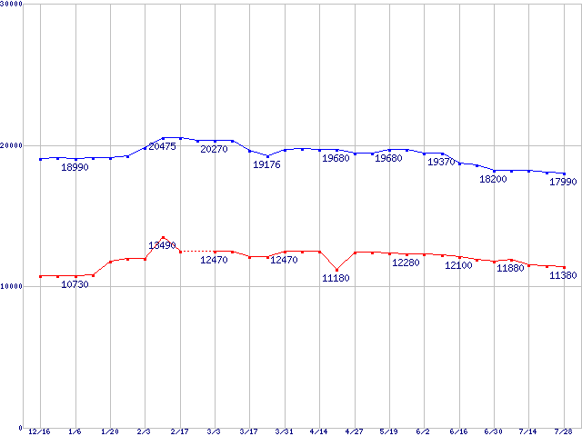 WD Raptor (10000rpm,Serial ATA/150,8MB)の最安値推移