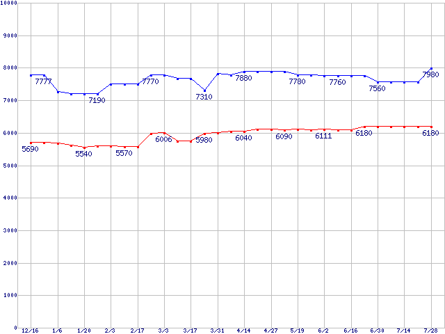 Deskstar 7K250 (7200rpm,Ultra ATA/100)の最安値推移