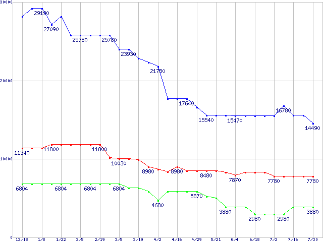 PC3200(DDR400) DDR SDRAM DIMMの最安値推移