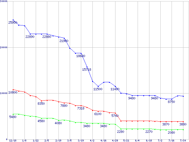 メモリ主要製品の最安値推移