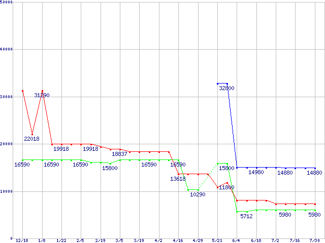 PC2700(DDR333) DDR SDRAM DIMMの最安値推移