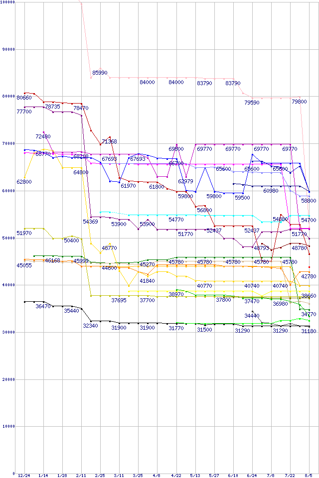 CPU主要製品(最安値2万円~3万円未満)の最安値推移