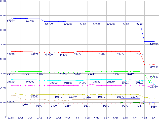 mPGA 479M・FSB 400MHzの最安値推移