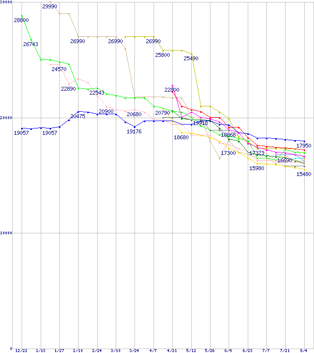HDD主要製品(最安値2万円以上)の最安値推移
