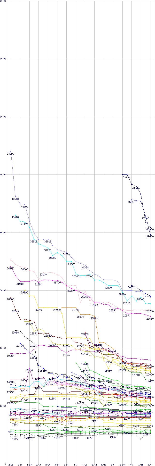 | HDD主要製品の最安値推移 | | | (2004年12月22日~2005年8月4日) |
