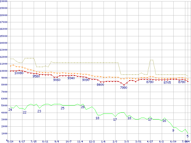 | 6Y120M0 (120GB)の価格推移 | | | (2004年5月20日~2005年8月4日) |