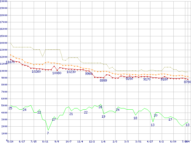 | HDS722516VLSA80 (160GB,8MB)の価格推移 | | | (2004年5月20日~2005年8月4日) |