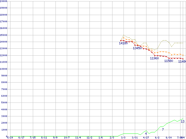 | ST3200826AS (200GB)の価格推移 | | | (2004年5月20日~2005年8月4日) |