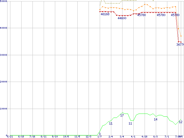 | Pentium M 760 (2GHz)の価格推移 | | | (2004年5月21日~2005年8月5日) |