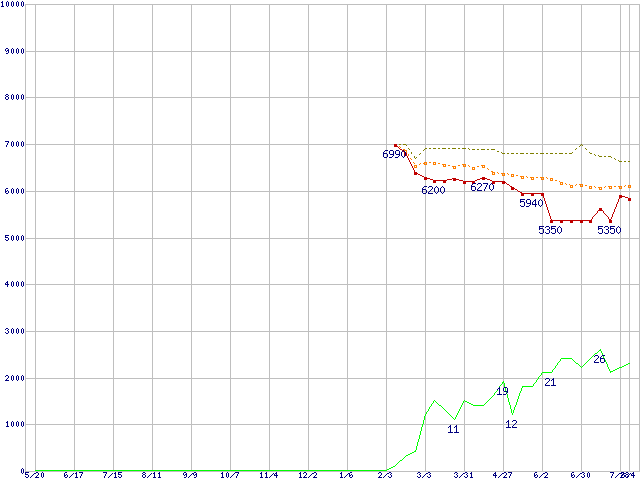 | HDS728080PLA380 (80GB,8MB)の価格推移 | | | (2004年5月20日~2005年8月4日) |