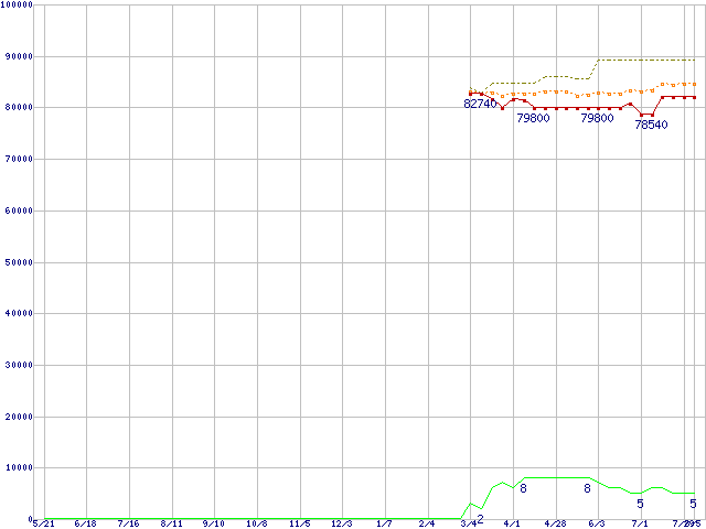 | Xeon 3.4GHz(FSB800,L2 2MB)の価格推移 | | | (2004年5月21日~2005年8月5日) |