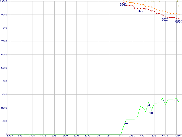 | HDT722516DLAT80 (160GB,8MB)の価格推移 | | | (2004年5月20日~2005年8月4日) |