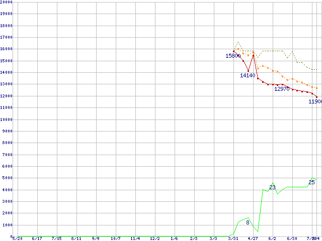 | HDT722525DLAT80 (250GB,8MB)の価格推移 | | | (2004年5月20日~2005年8月4日) |