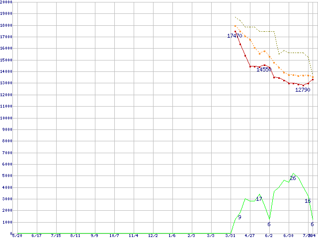 | HDT722525DLA380 (250GB,8MB)の価格推移 | | | (2004年5月20日~2005年8月4日) |