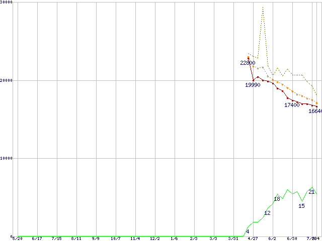 | 7L300R0 (300GB)の価格推移 | | | (2004年5月20日~2005年8月4日) |