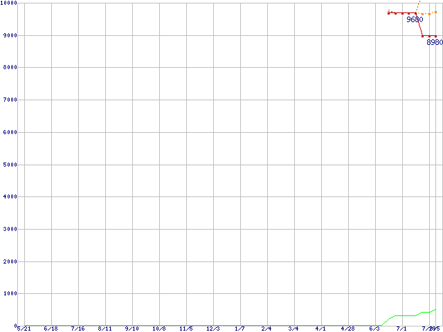 | Celeron M 350J (1.3GHz,NX bit対応)の価格推移 | | | (2004年5月21日~2005年8月5日) |