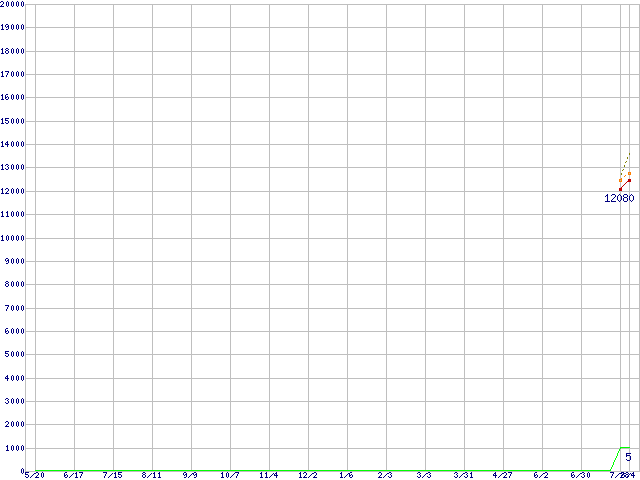 ※このグラフは過去のデータも税率5%相当に調整した税込み相当額のグラフです。 税率変更や、総額表示方式導入(2004年4月)の影響は除いています。 | | | ●凡例 | 最安値 (点線部は販売店未確認 または未調査) | 平均値 | 最高値 | ショップ数 |
