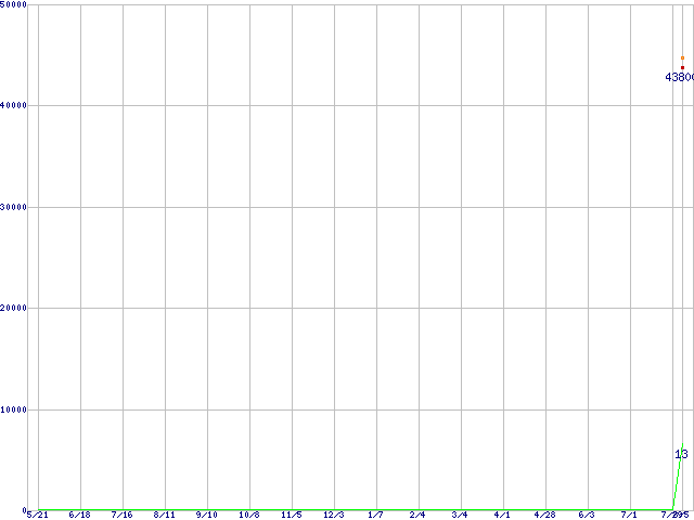 | Athlon 64 X2 3800+(2.0GHz,L2 512KBx2)の価格推移 | | | (2004年5月21日~2005年8月5日) |