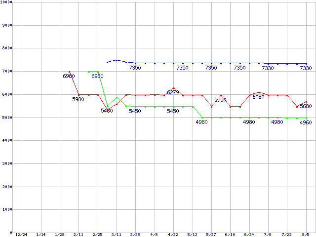 Socket A (OPGA,FSB 266MHz,L2 256KB)の最安値推移