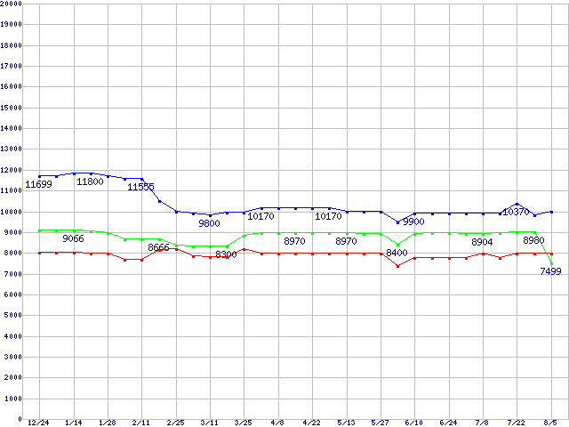 Socket 754 (PGA,FSB 800MHz)の最安値推移