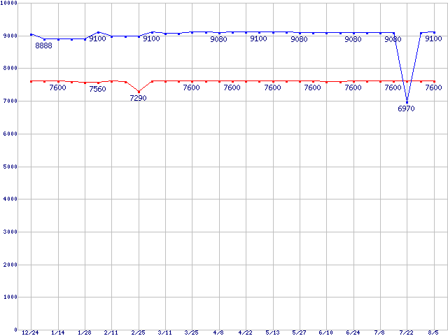Socket 478 (FC-PGA2,533MHz,L2 256KB,Prescott)の最安値推移