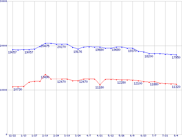 WD Raptor (10000rpm,Serial ATA/150,8MB)の最安値推移
