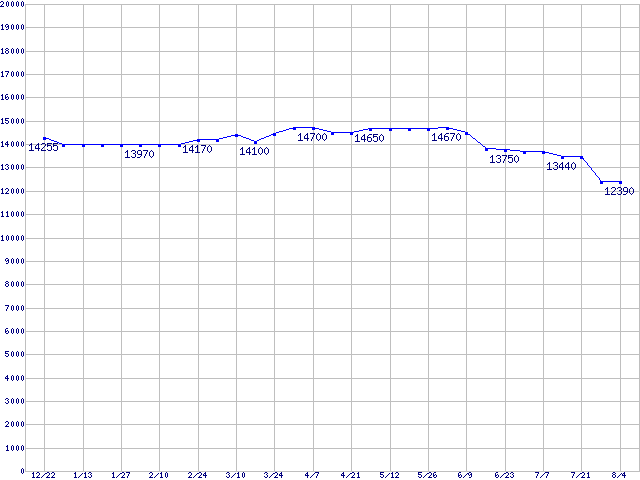 | MaXLine Plus II (7200rpm,8MB,Serial ATA/150)の最安値推移 | | | (2004年12月22日~2005年8月4日) |