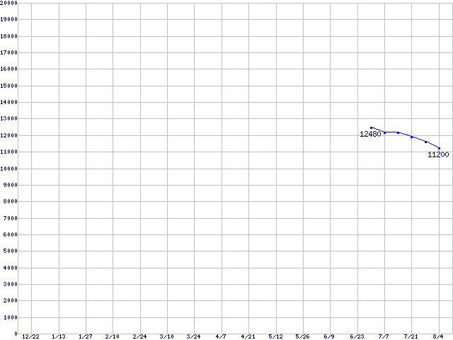 | SpinPoint (7200rpm,Ultra ATA/133,8MB)の最安値推移 | | | (2004年12月22日~2005年8月4日) |