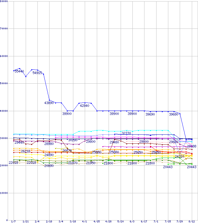 CPU主要製品(最安値1万円~2万円未満)の最安値推移