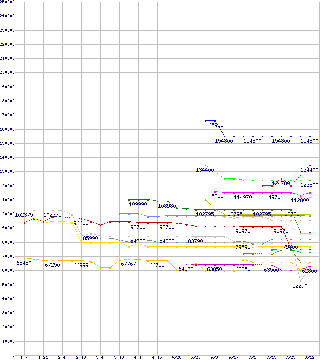 CPU主要製品(最安値3万円~6万円未満)の最安値推移