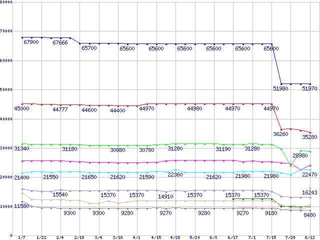 mPGA 479M・FSB 533MHzの最安値推移