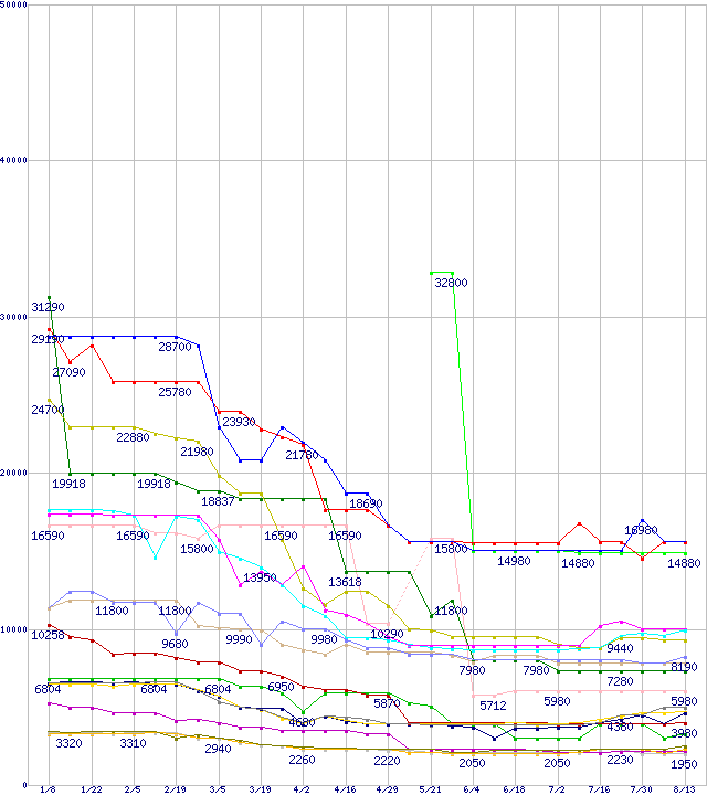※点線部は販売店が確認できなかった、または調査データがないことを示します